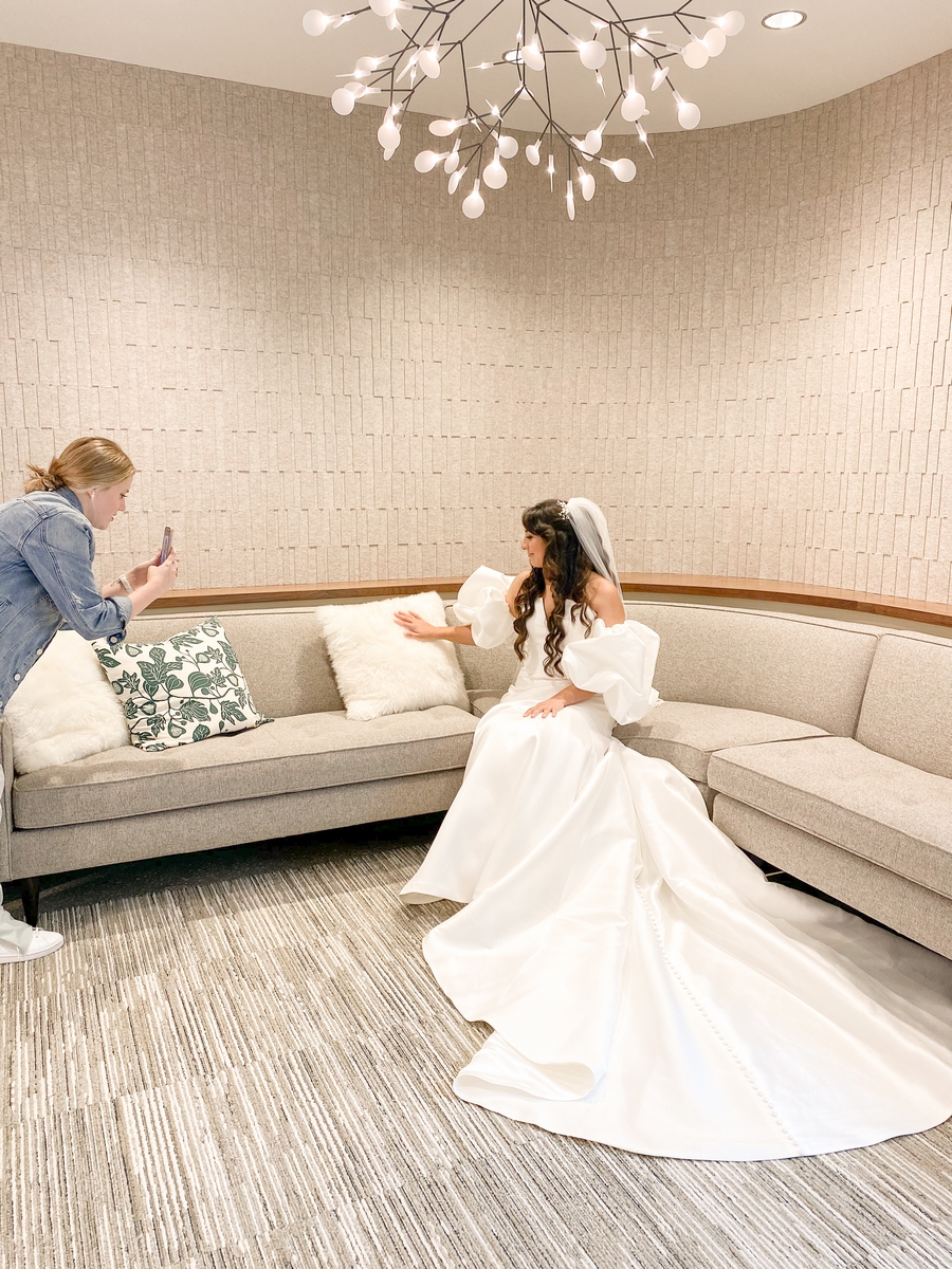 The moment I walked into the bridal suite was surreal. I couldn’t believe I was about to walk in a bride’s heels, wearing the most incredible dress I have ever laid eyes on, coached by one of the area’s most editorial-ready photographers. Molly Farris, of Love, Lipstick, & Lashes, enhanced my beauty and helped me feel confident. By the time the cameras were on me, I had already begun to believe I was a bride.