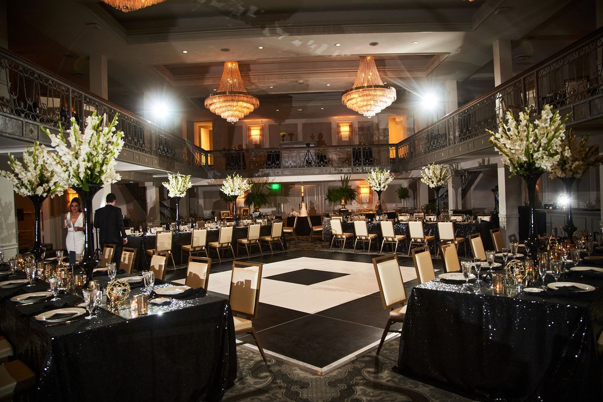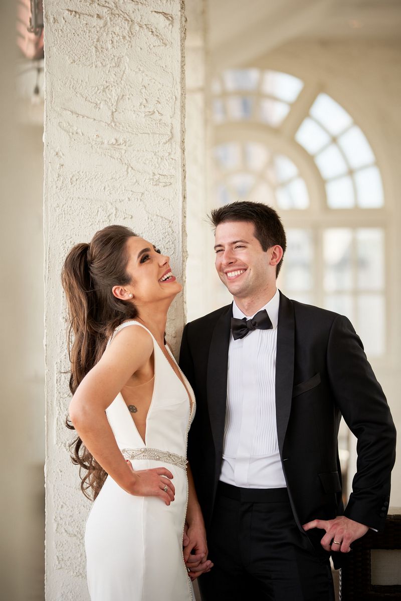 The wedding theme itself was centered around being a combination of Baroque and a modern Gatsby romance with core colors of black and white along with metal tones and pops of green. Briar loved the idea of a black and white dance floor so this element was taken into consideration as the couple planned their wedding. Freesia Designs was a big help in the planning process by creating the vision that the couple saw from day one with their florals and linens.